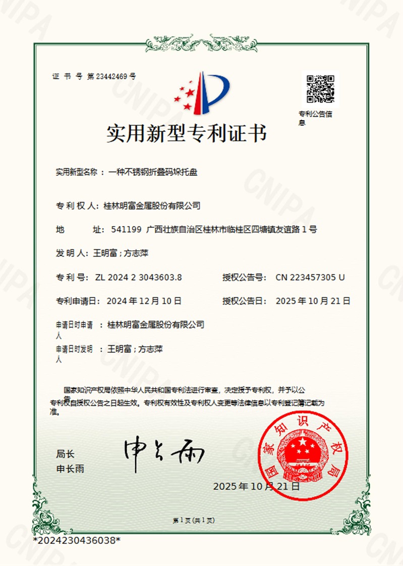 A Stainless Steel Foldable Pallet for Stacking