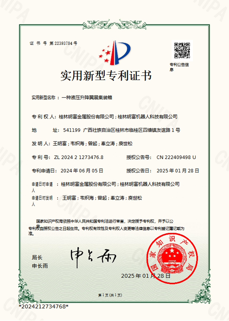 一种液压升降翼展集装箱
