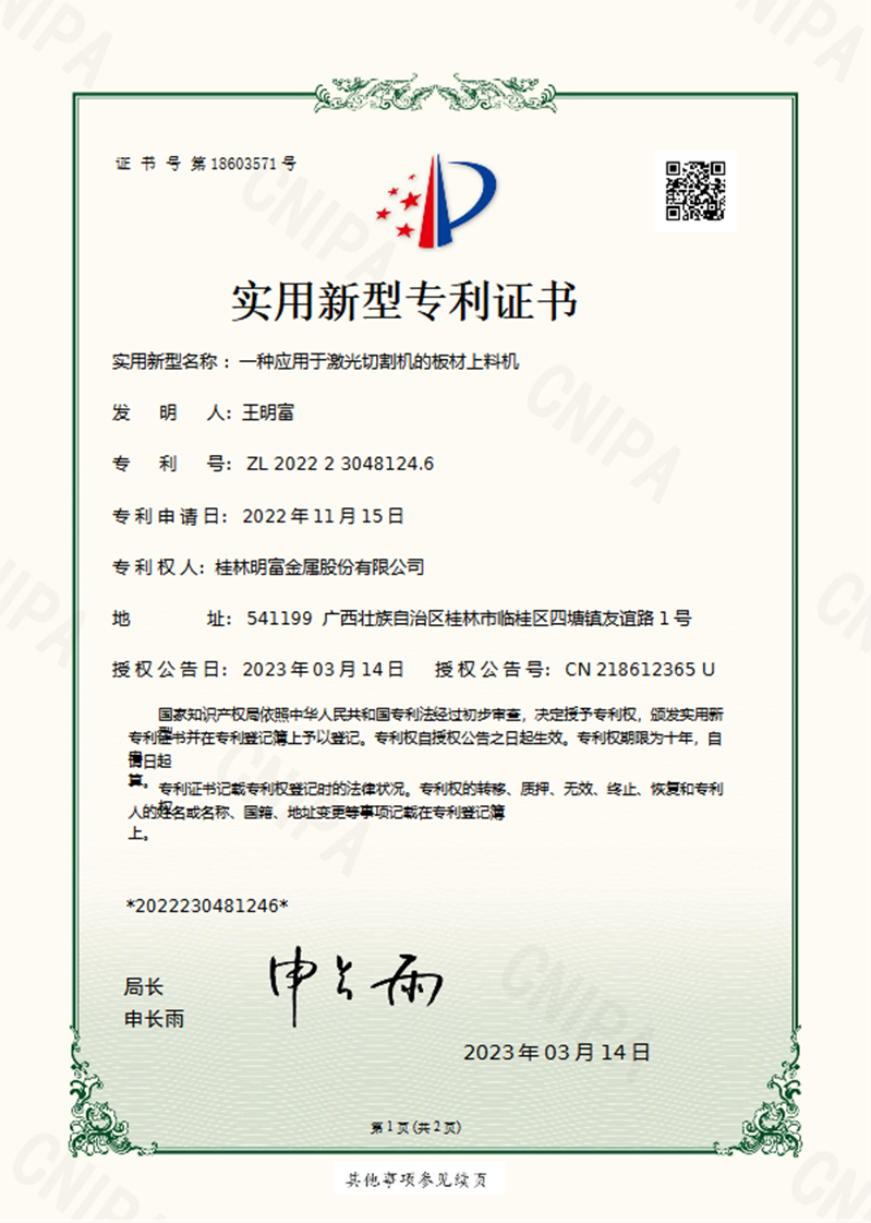 一种应用于激光切割机的板材上料机